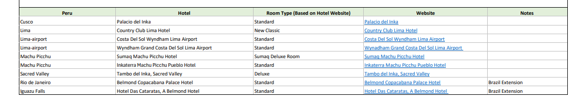 Hotels Used: